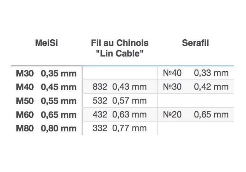In the transition to MeiSi thread with threads from other manufacturers often asked question of the appropriate thickness with the “usual markings”.